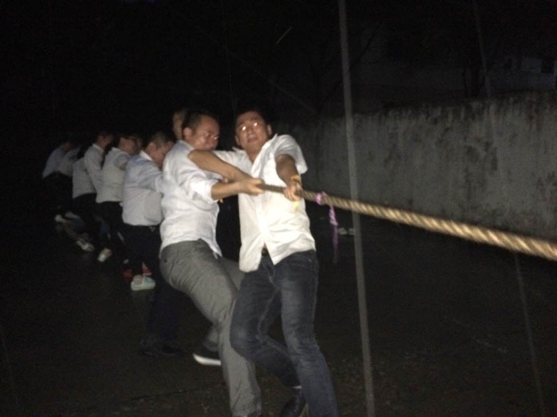 2015年4月7日公司舉行拔河比賽,上午還晴空萬里的天氣,下午卻天公不作美和之前風和日麗的景致截然相反突然下起了大雨,所有一直焦急的等待著雨停,一直到下午6.30分,雖然仍是陰雨飄落,且溫度降低且天已經黑了,在經過各隊長的商量后一致決定冒雨拔河。